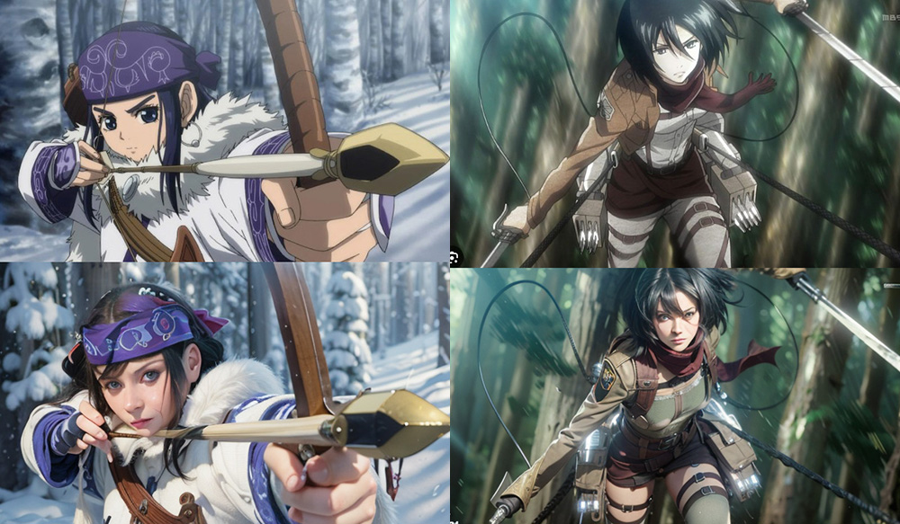 以下のようなアニメキャラのリアル化が可能です。