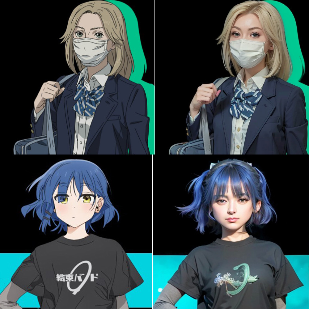 これらのキャラを、MimicPCを使ってリアルな実写風に変換できました。